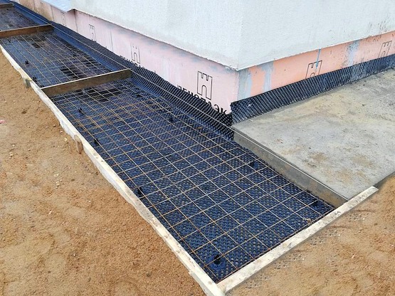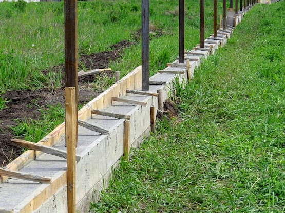 Ленточный фундамент с цокольным этажом имеет два слоя бетона: нижний слой, образующий основание под фундамент, и верхний слой, на котором строится цокольный этаж.